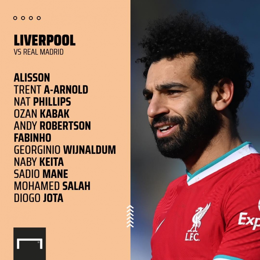 Liverpool: Alisson; Alexander-Arnold, Phillips, Kabak, Robertson; Wijnaldum, Fabinho, Keita; Salah, Mane, Jota.