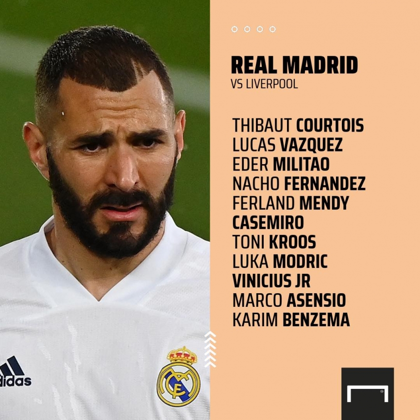 Real Madrid: Courtois; Lucas Vazquez, Eder Militao, Nacho, Mendy; Modric, Casemiro, Kroos; Asensio, Benzema, Vinicius Jr